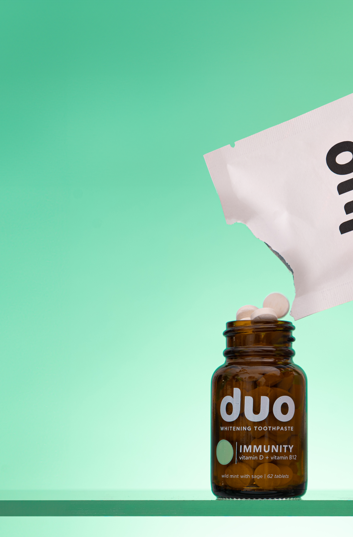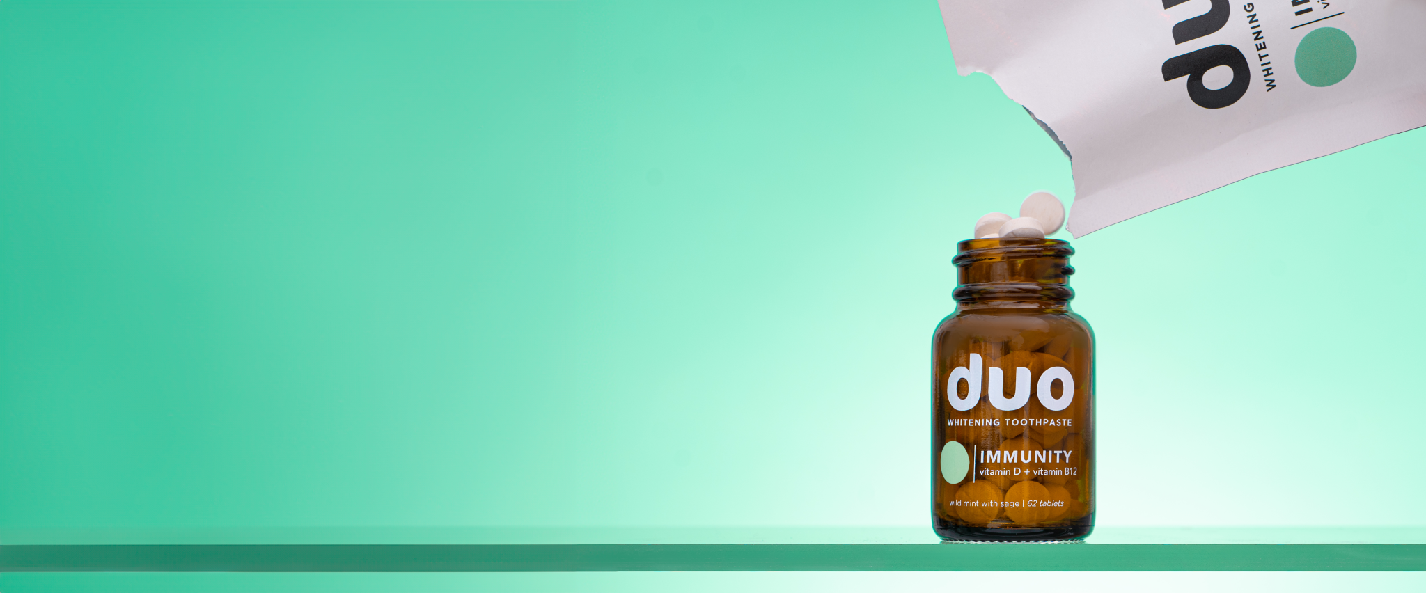 Nope! Supplements like vitamin D, vitamin B12, melatonin, and caffeine are absorbed when they come into contact with the tissues in your mouth. This is called mucosal absorption. When you brush with Duo, these supplements efficiently reach your system without needing to be swallowed.