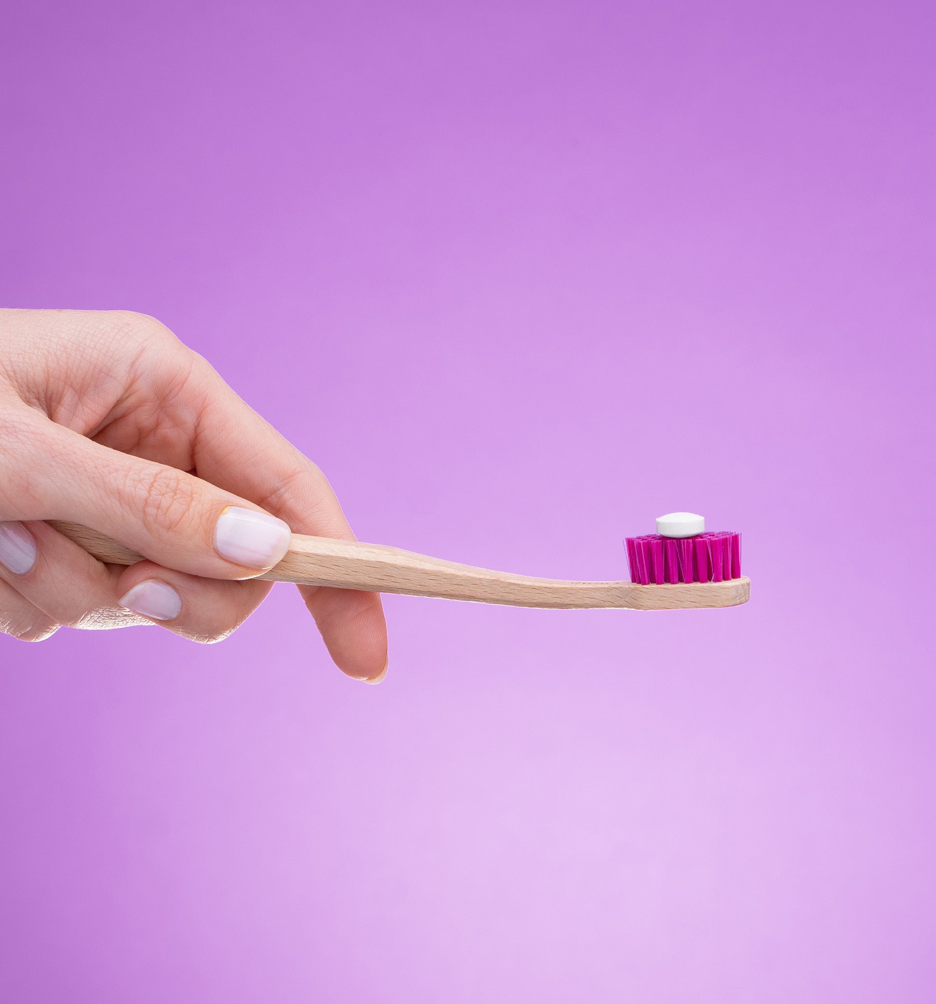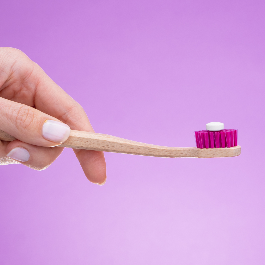 Wet your toothbrush and pop a tablet in your mouth. Crunch to break it up into tiny bits. You may feel some bits as you start brushing, and that’s okay. Our natural silk foam will build and reach its peak in about 30 seconds. Brush for at least two minutes. Spit. Rinse if you’d like.