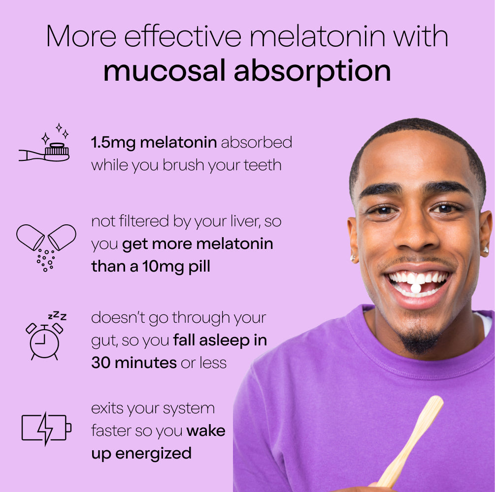 Enhance your nighttime routine with sleep-supporting melatonin absorbed directly and efficiently as you brush. Featuring a calming lavender mint flavor.